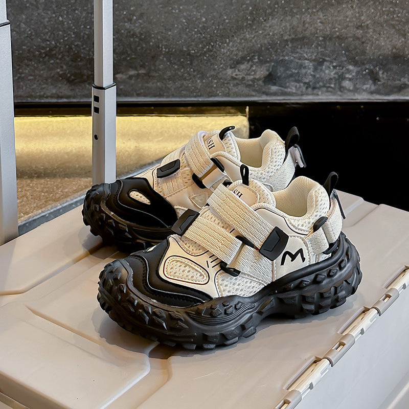 MESH DOUBLE VELCRO CLOSURE SNEAKERS - WHITE & BLACK
