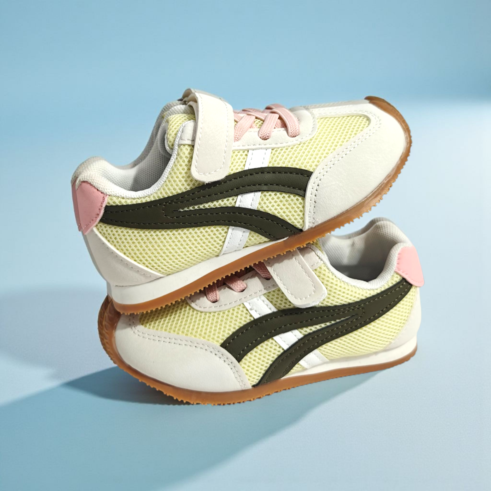 DUAL COLOR VELCRO SHOES - YELLOW & PINK