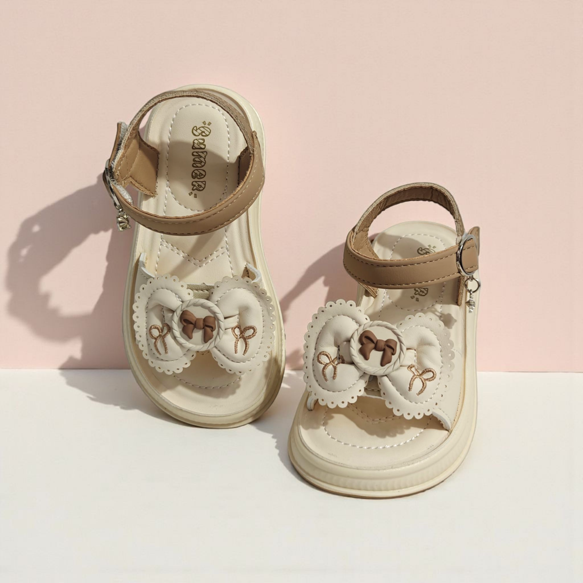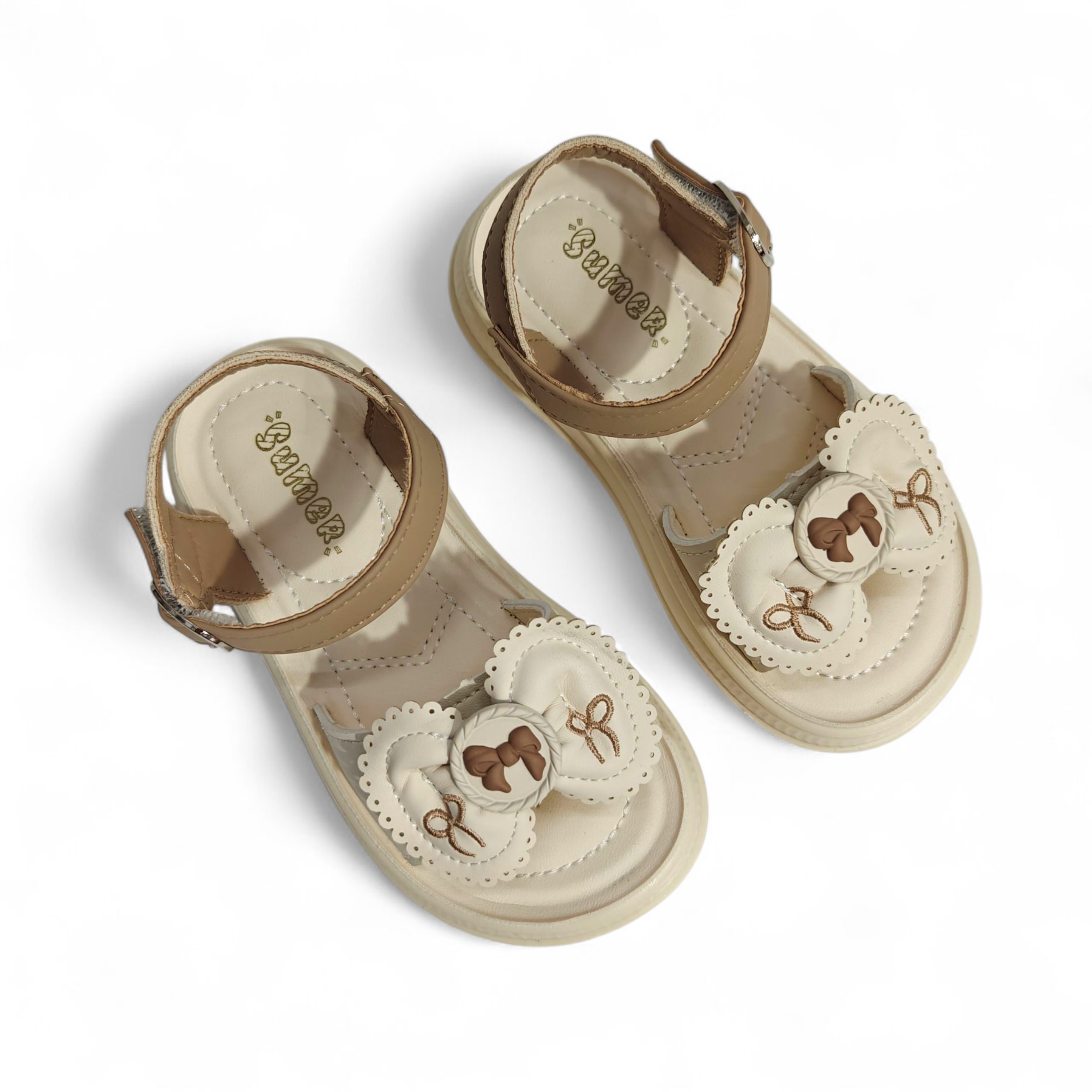 BOW APPLIQUE SANDALS - BEIGE