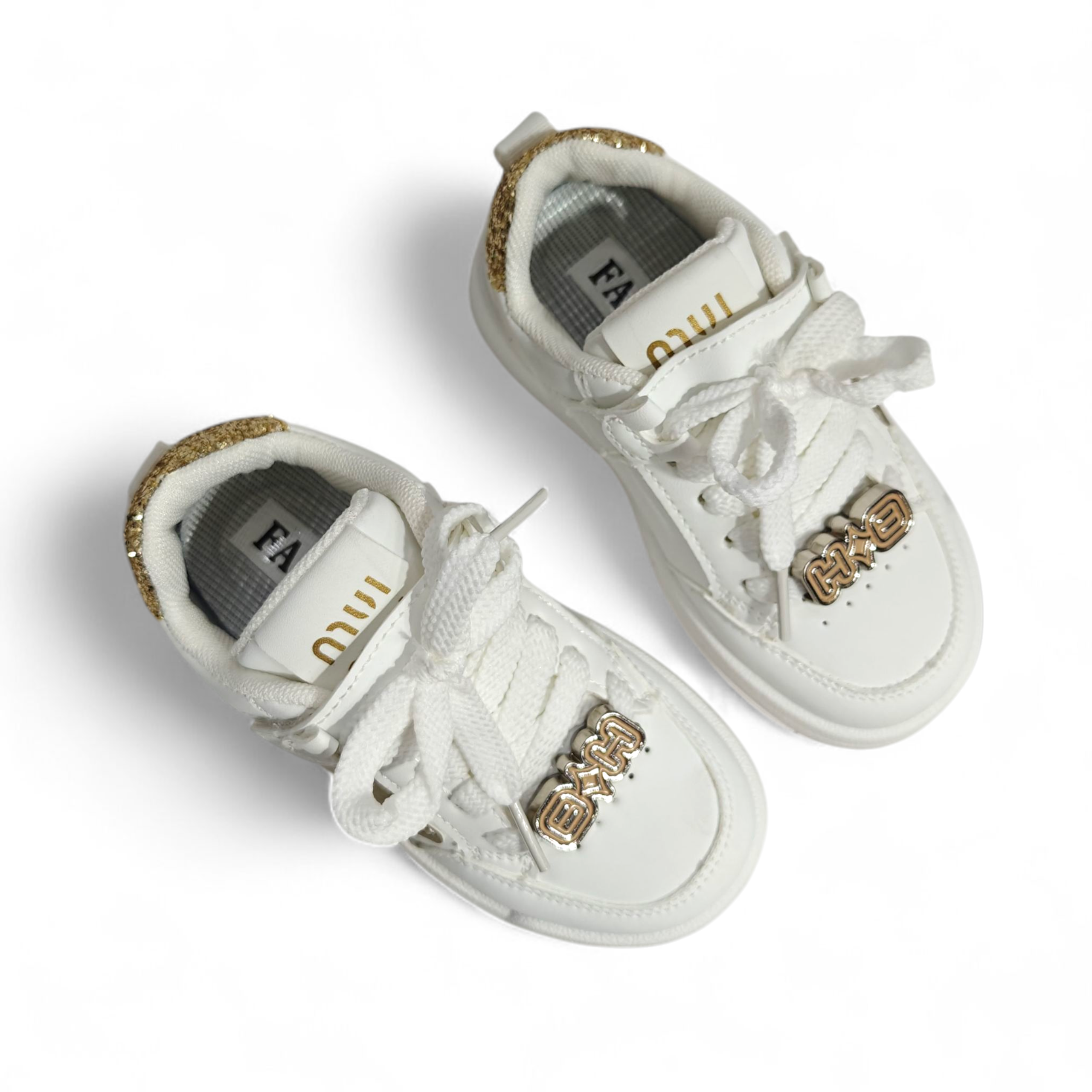 STAR PATCH VELCRO SNEAKERS - WHITE & GOLD
