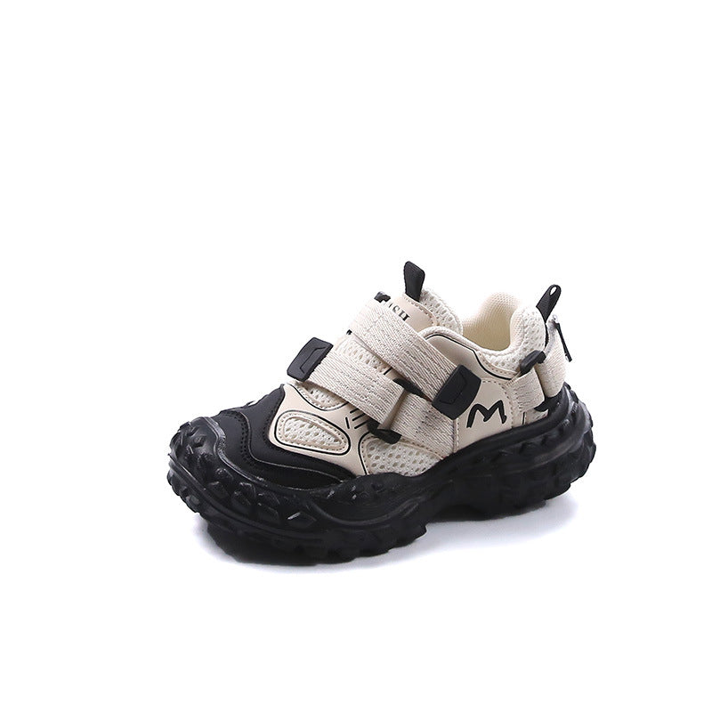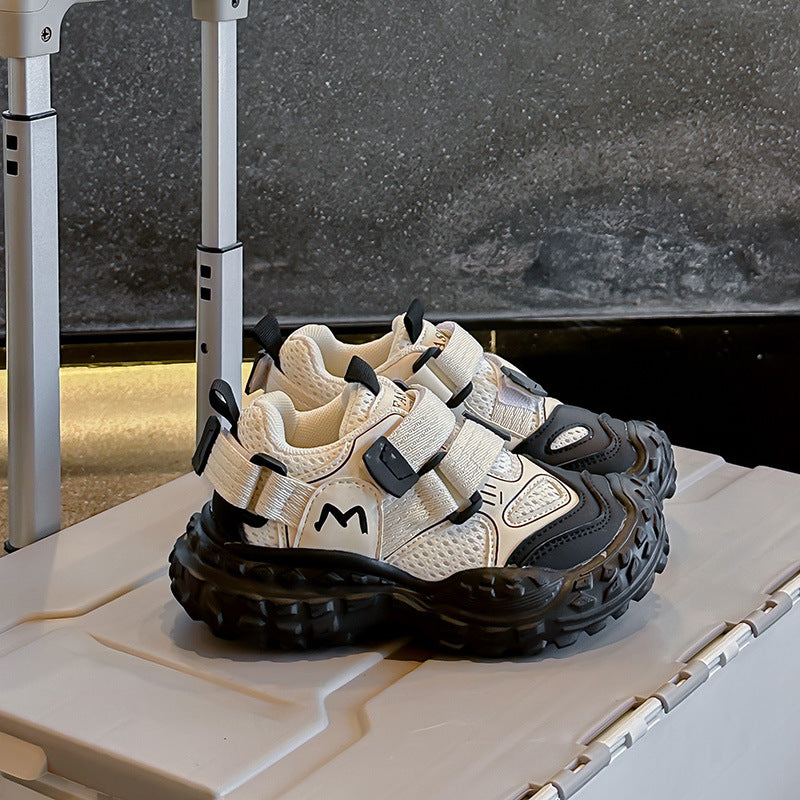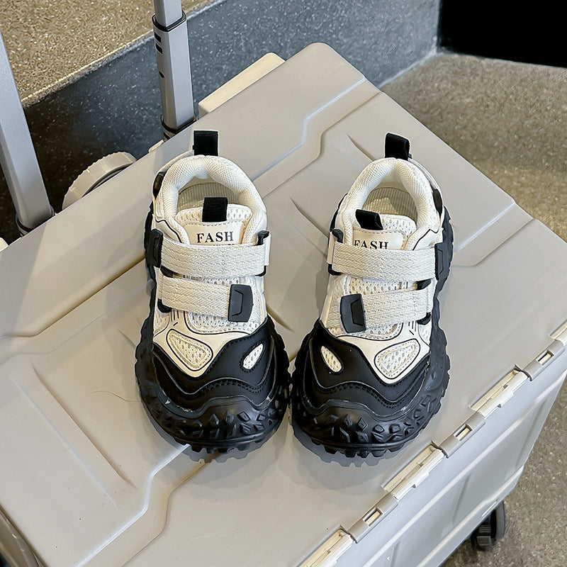 MESH DOUBLE VELCRO CLOSURE SNEAKERS - WHITE & BLACK