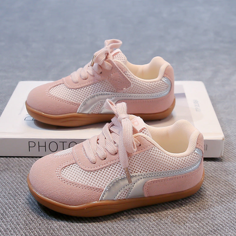 COLOR BLOCK VELCRO SNEAKERS - PINK & SILVER