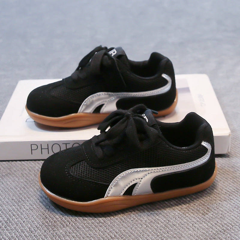 Mesh Detailed Lace Design Velcro Closure Sport Shoes - Black