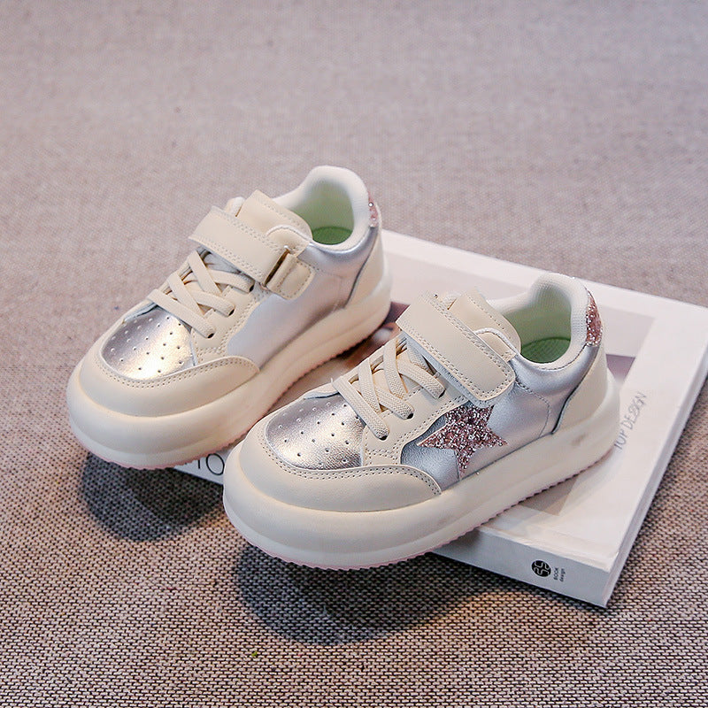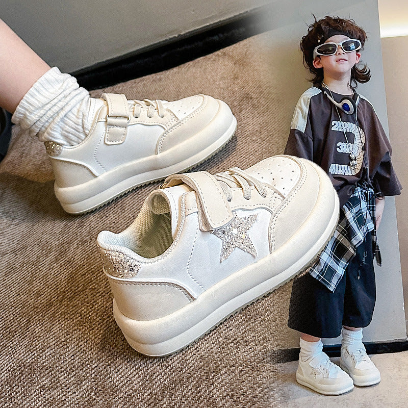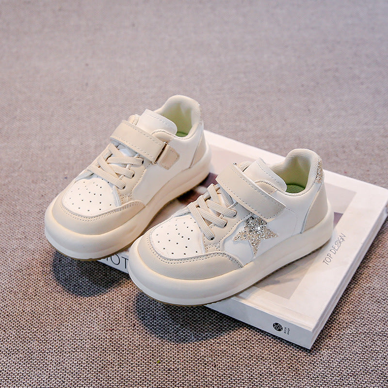 GLITTERED STAR SNEAKERS - WHITE & BEIGE