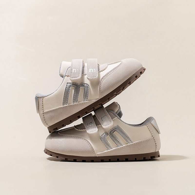 SHINY DOUBLE VELCRO SNEAKERS - WHITE & GREY