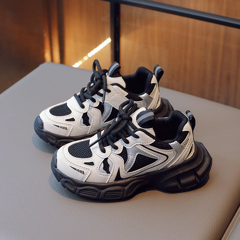COLOR BLOCK VELCRO SNEAKERS - BLACK & SILVER