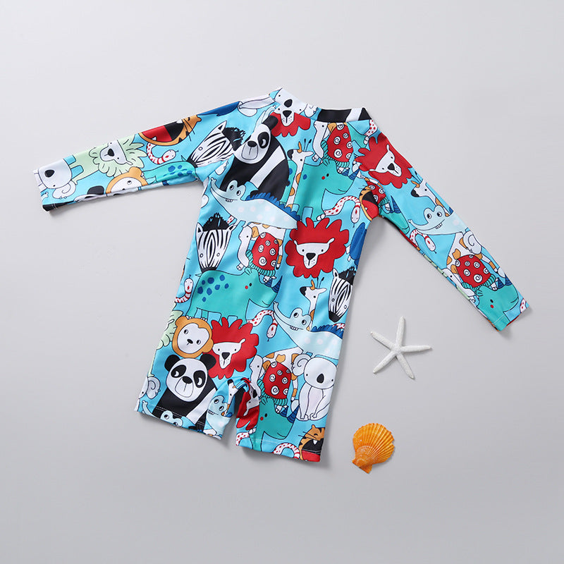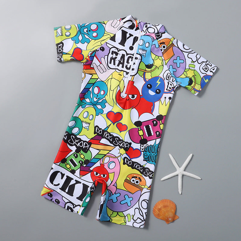 All Over Cartoons Printed Legged Swimsuit - Multicolor