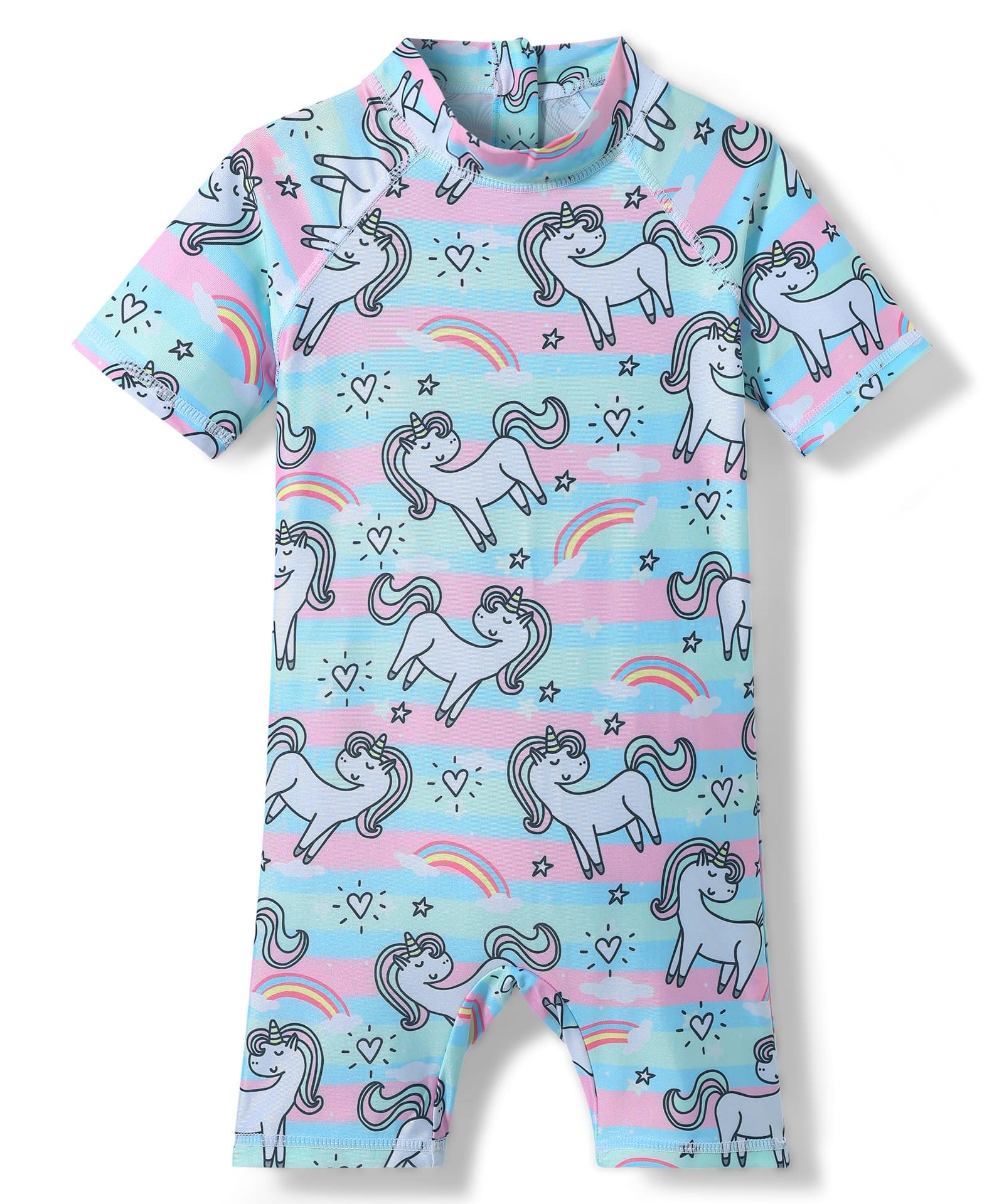 All Over Unicorn Printed Legged Swimsuit - Multicolor