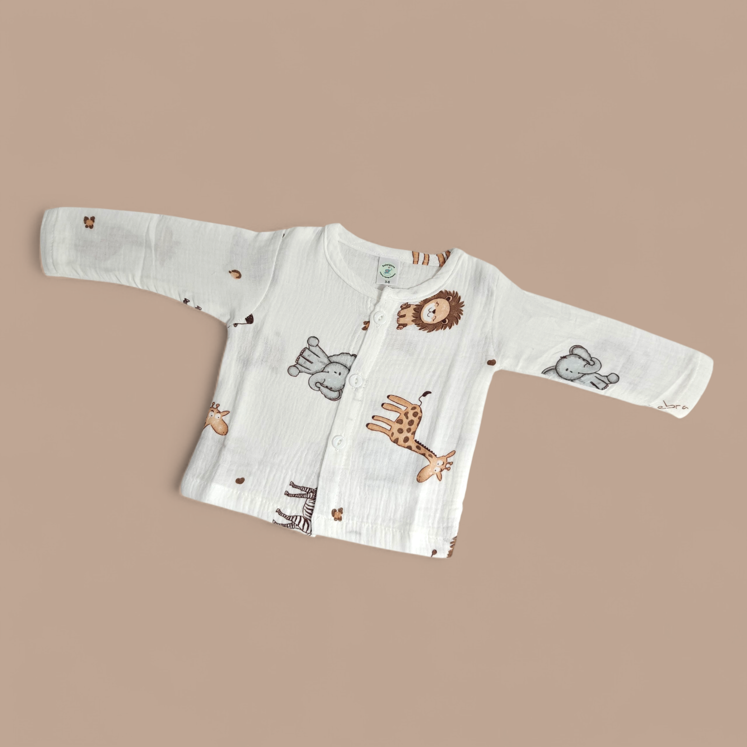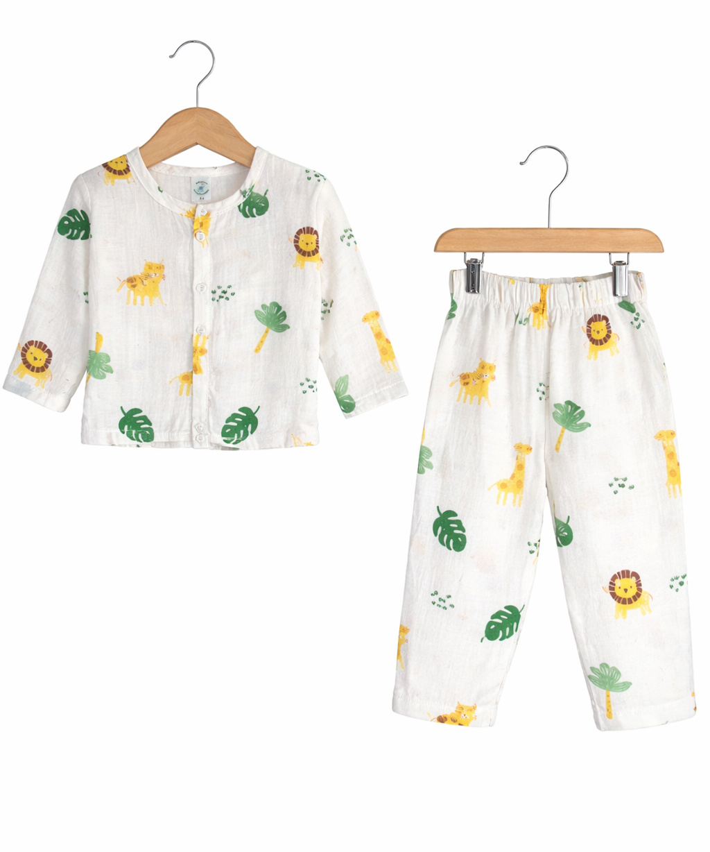 ANIMAlS PRINT BUTTON-UP MUSLIN NIGHTSUIT - WHITE